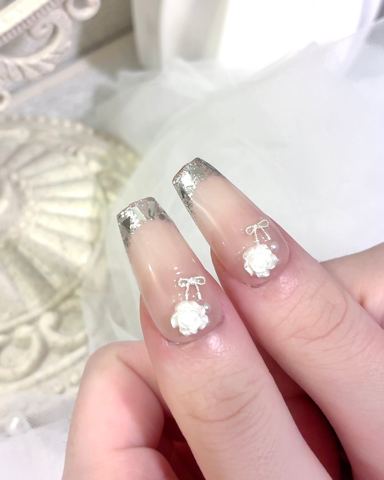 贅沢なビジューとローズをあしらった大人可愛いデザインです。