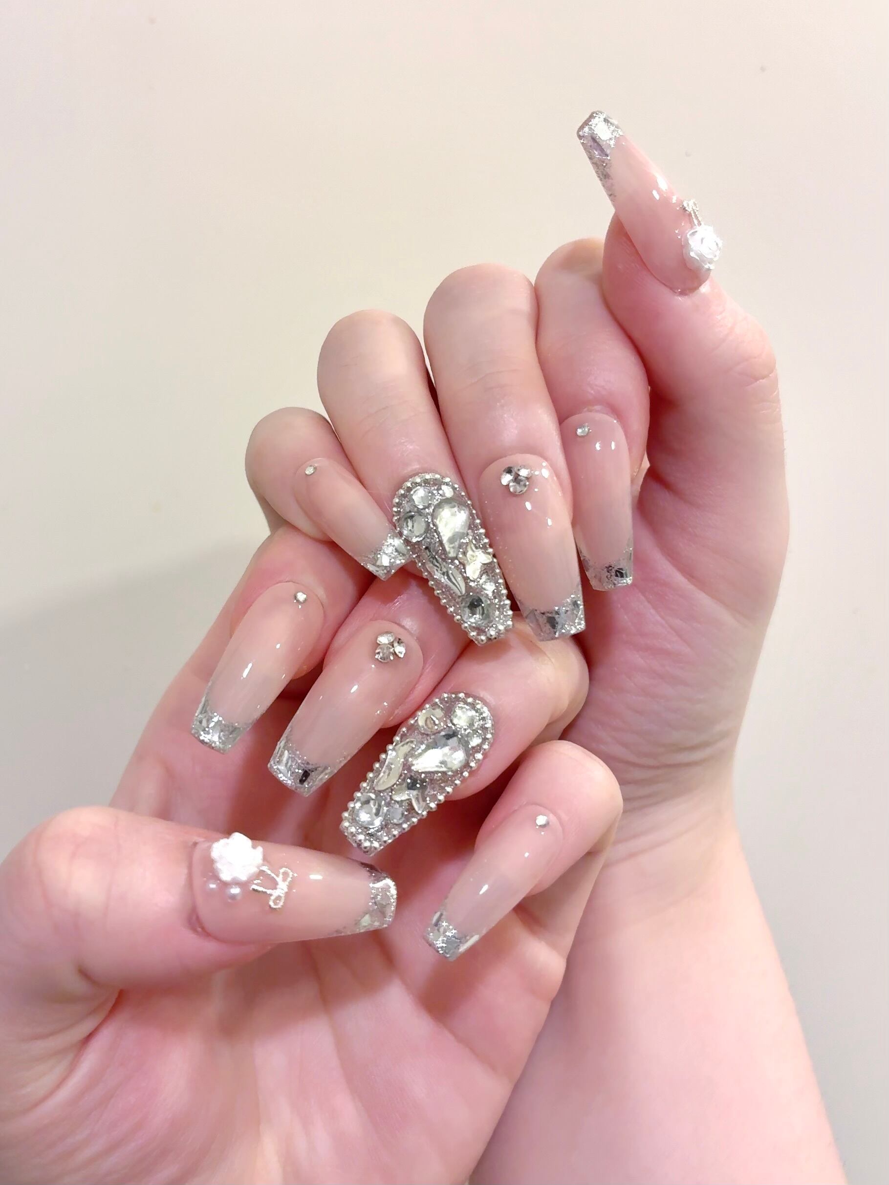 落ち着いたピンクベージュにガラスフレンチを重ね、